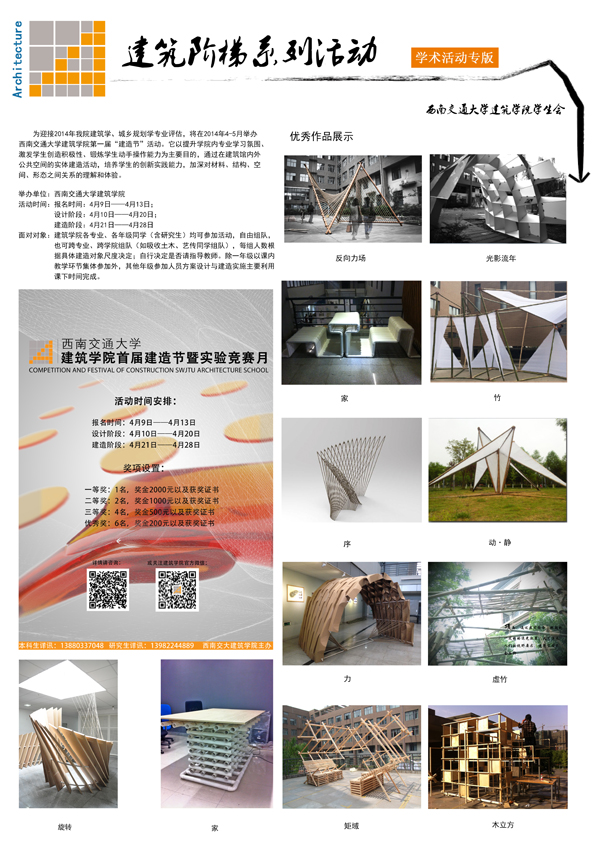 首届“建造节”活动。本次活动以2014年建筑学、城乡规划学专业评估为契机,以进一步激发反差母狗