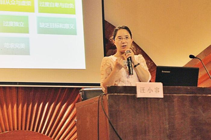 讲座中汪小容老师是从心理健康与幸福人生、认识自我、情绪与压力管理、有效人际沟通和学会学习这五个模块来开展全面而详细的讲解的。