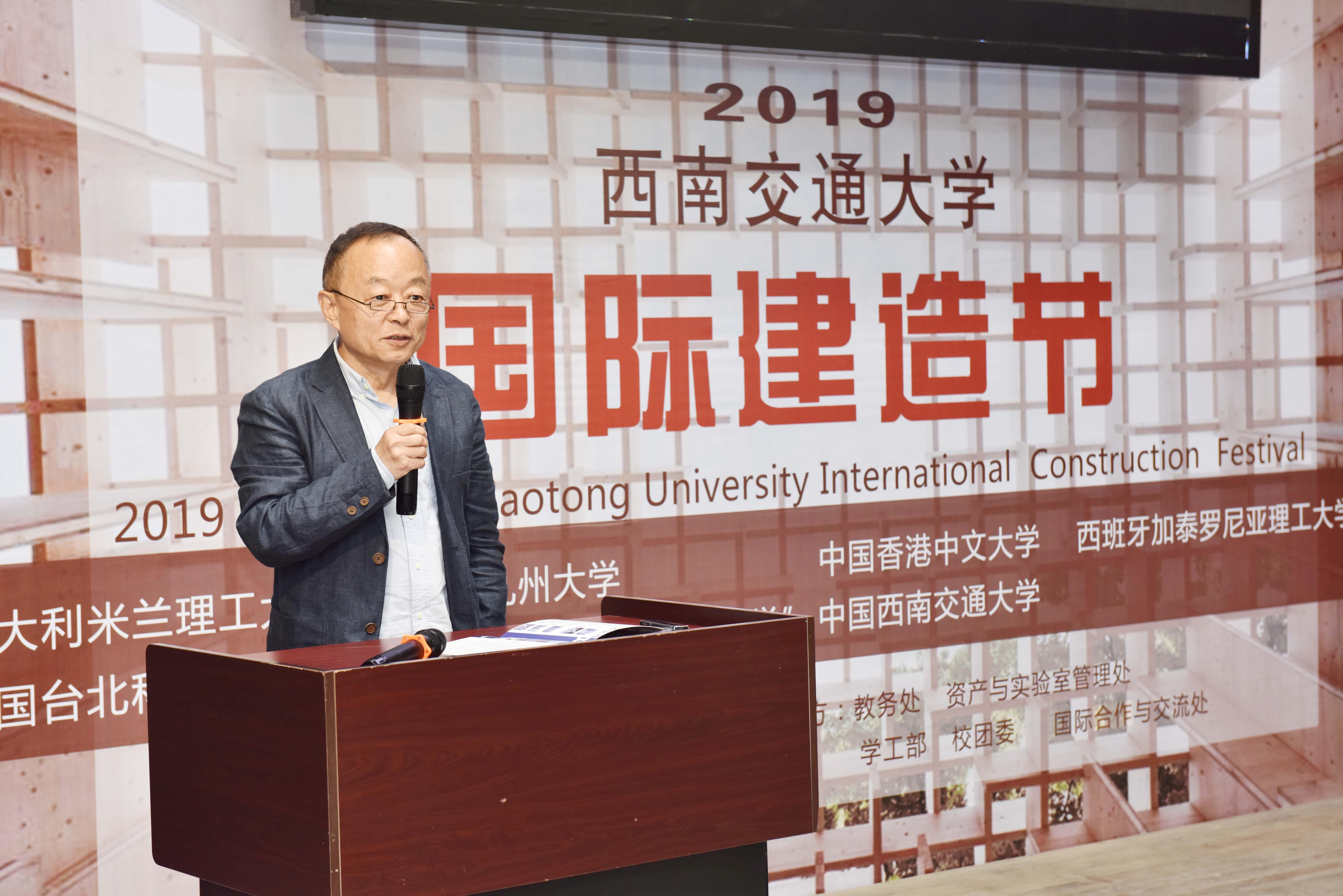 校长徐飞教授发表了讲话。他高度肯定了此次活动,并提出五点希望:一是更好地将科学(S)、技术(T)、工程(E)、艺术(A)乃至数学(M)有机结合,在建造中更切实地体现STEAM的内涵;二是在建造中更充分地彰显专业精神、创新精神、工匠精神和企业家精神;三是一如既往地坚守和秉持绿色、低碳、节能、环保理念,为建设资源节约型和环境友好型社会贡献力量;四是致力于培养高雅的审美情趣,崇尚美、鉴赏美、创造美,做一名有温度、有情怀、有风骨的建造者,;五是中外青年学子携起手来互学互鉴,自觉成为中外人文交流和学术交流的使者,为推动实现“各美其美、美人之美、美美与共”的人类命运共同体作出不懈努力。