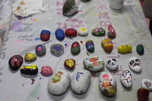 志愿者们被分成了两个队伍,一个队伍将带着孩子们在石头上作画,另一个队伍则带着孩子们在雨伞上作画。石头和雨伞都曾经是建筑青协爱心义卖的主角,都为这群孩子们征集了不少的爱心和捐款,这次志愿者们也希望让孩子们亲手在石头和雨伞上描绘自己的心愿,并在石头和雨伞上慢慢萌芽。