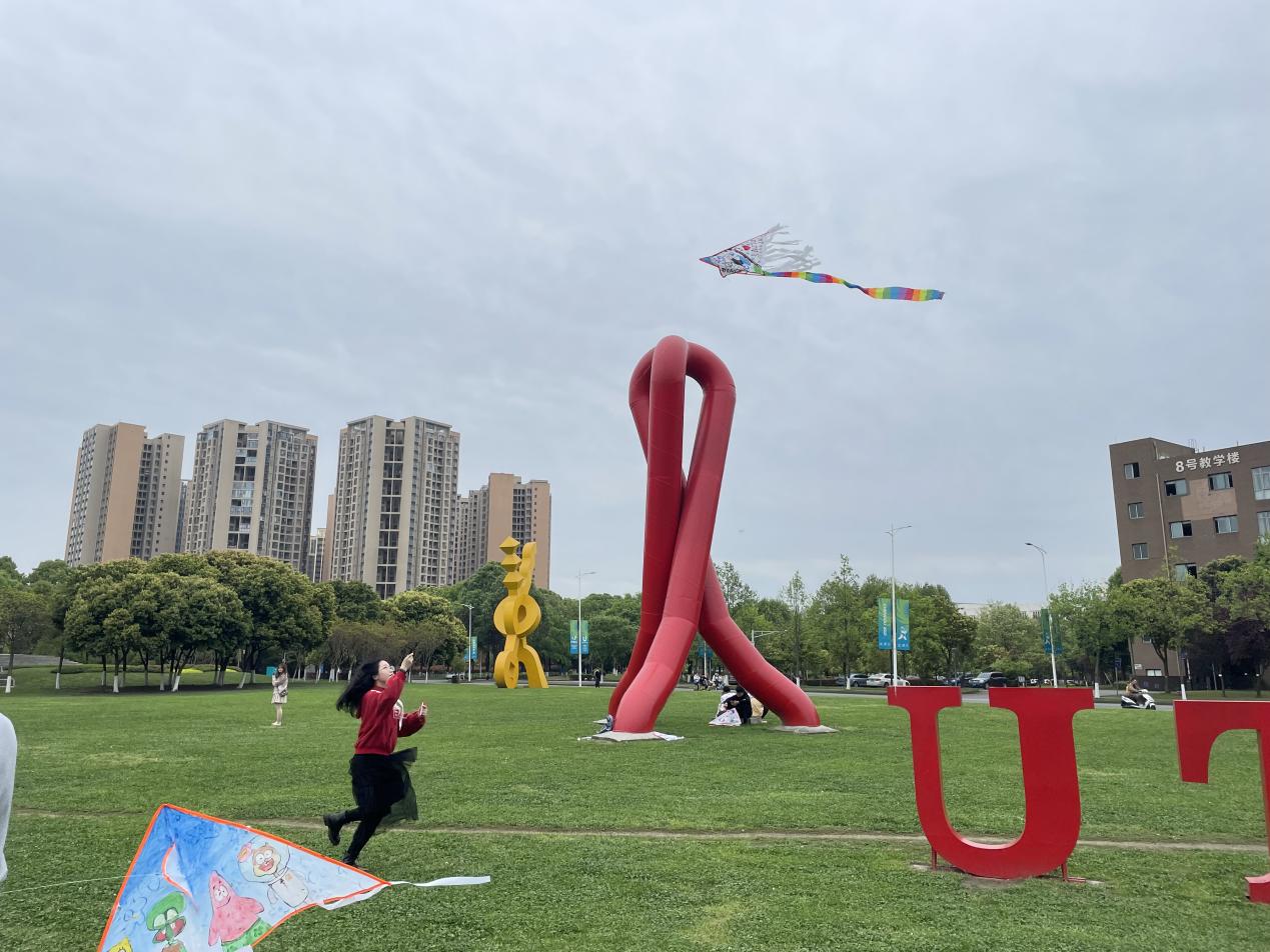 “四季初始,当风而立”。随后,同学们将绘制好的风筝在犀湖畔的草坪上迎风放飞,奔跑打闹,肆意青春的少年与玩闹的孩童一齐成为明媚日子里最靓丽的风景线。