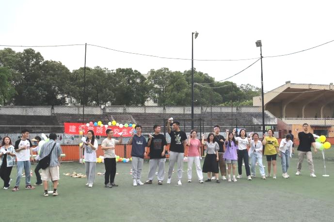 游戏环节主要是通过不同的活动体验增强同学们之间的交流合作,让同学们从游戏中感受到快乐与他人的力量。“玫瑰花开”游戏中,要求同学们按口令成群抱在一起,需要高灵敏度的游戏让同学们卸下心理包袱与防备,更加专注于享受当下;“踩破烦恼”通过友谊赛两两PK的形式,调动大家释放压力的主动性,踩破的是气球,“消灭”的是焦虑和烦恼;“齐心协力站起来”需要各组同学手挽手在互相帮助之下站起来,一定程度上加强了组员的相互协作和相互信任,促进组内沟通交流,增强了团队的凝聚力。游戏结束后,工作人员为积分更高的小组颁发奖品并合影留念。活动的最后,主持人代表研究生会全体成员表达了对每位同学的美好祝愿。